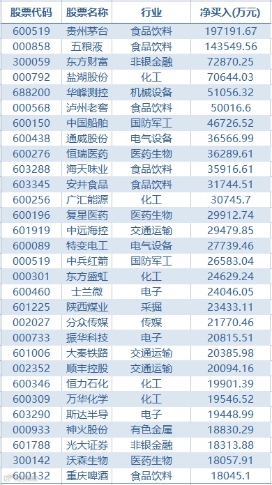 上周北上资金净买入较多的个股