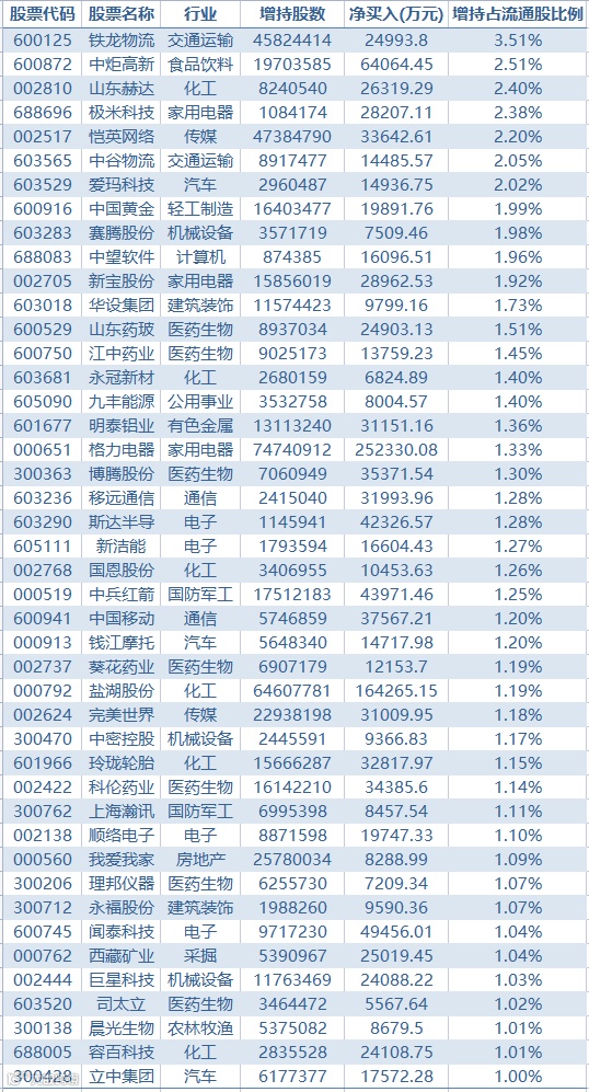 9月,北上资金净买入铁龙物流2.5亿元,增持逾4582万股,占流通股的3.5%,是9月增持股份占流通股比例最高的个股。总持股由8月末的7185万股增至1.18亿股,创历史新高。