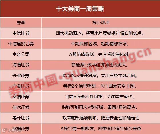 【十大券商一周策略】月度级别行情将现!A股重回7月初高点?关注三条主线