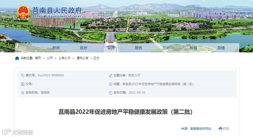 9月20日,山东省临沂市莒南县发布《2022年促进房地产平稳健康发展政策(第二批)》。
