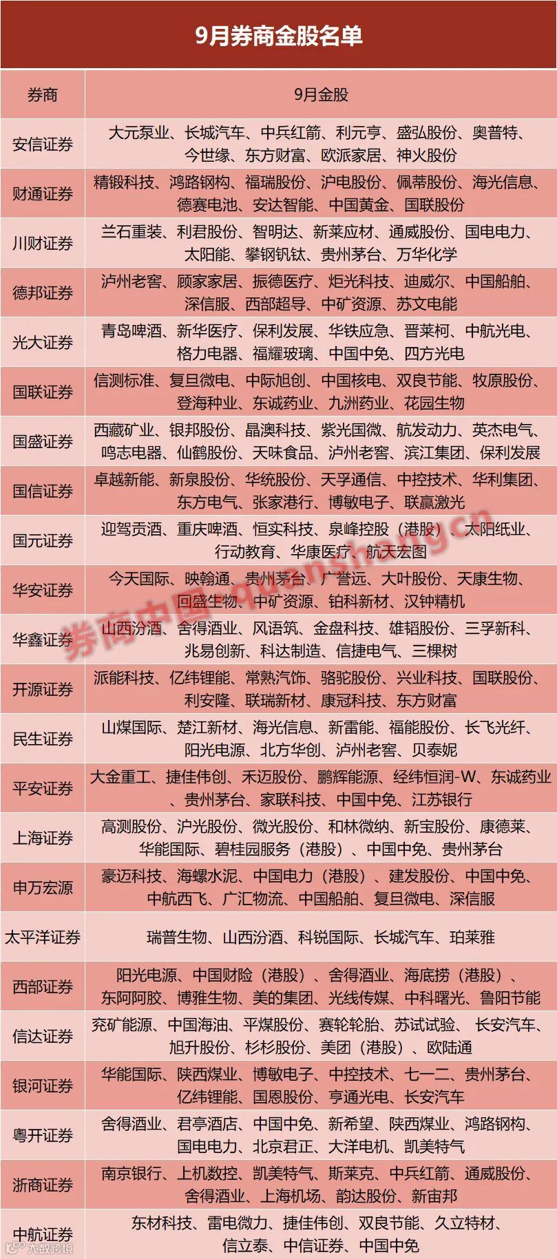 进入9月,券商最新金股名单也随之出炉。