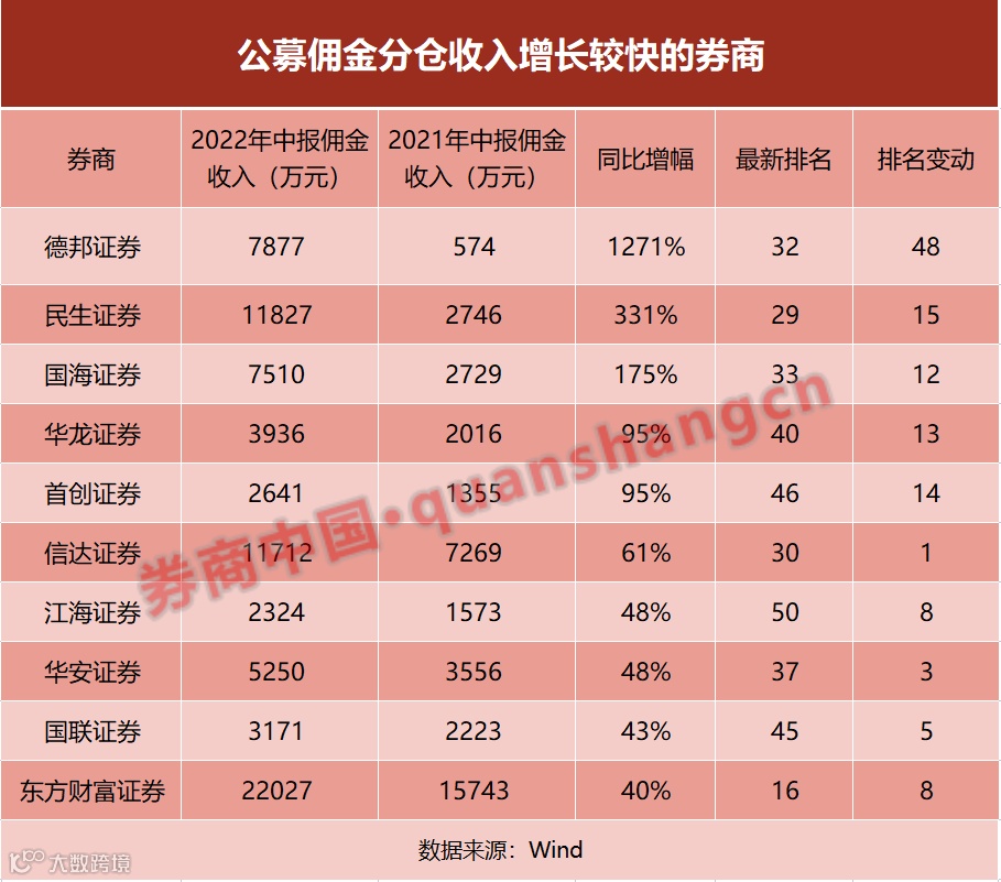 具体来看,德邦证券在今年上半年揽入7877万元的佣金收入,最新排名升至第32位,而其去年同期佣金尚不足千万元。据悉,德邦证券研究所2021年年初成立。2021年2月份,前华创证券研究所所长任志强在红塔证券短暂停留后,入职德邦证券研究所担任所长,目前德邦证券研究团队规模约百人。