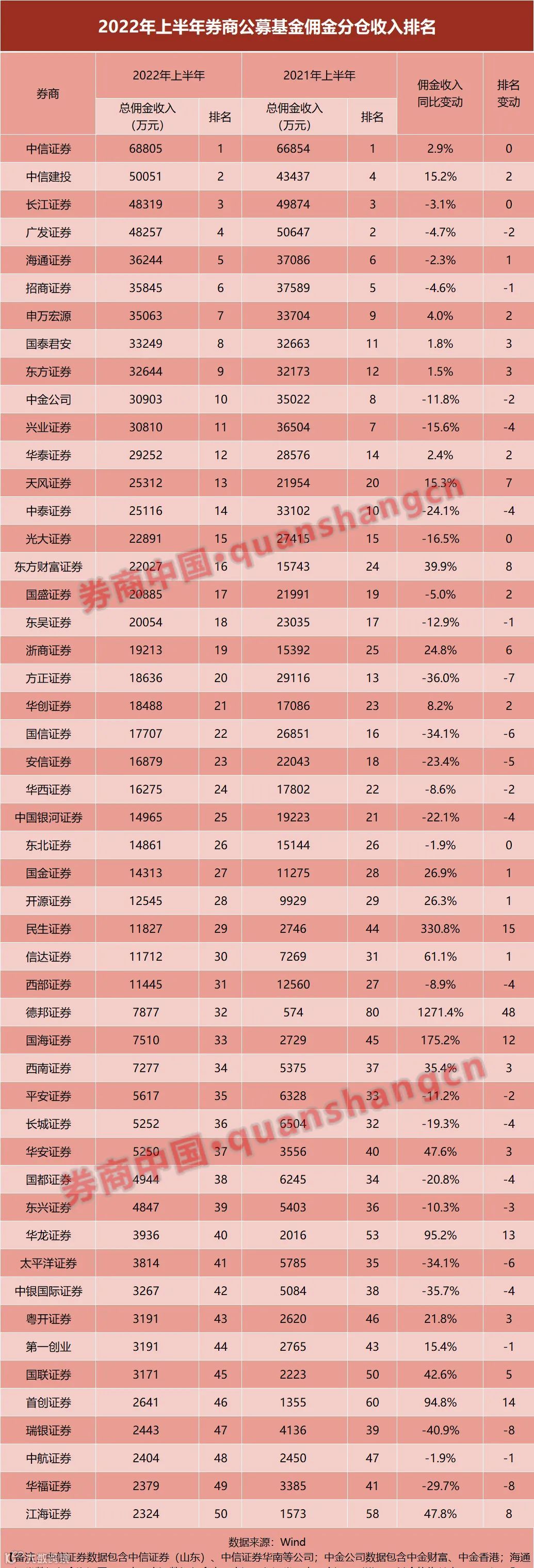 随着基金中报披露完毕,券商佣金分仓收入排名也正式出炉。
