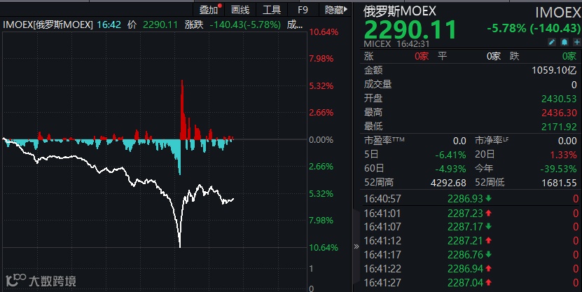 俄罗斯股市突然暴跌!