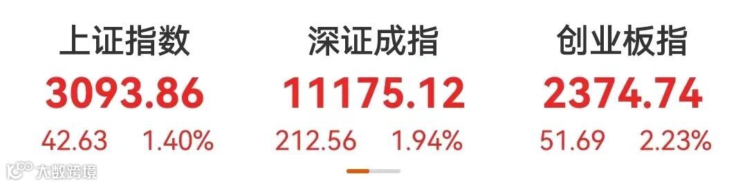 今日早盘,三大指数集体高开,截至收盘,沪指涨1.4%;深证成指涨近2%;创业板指涨2.23%。
