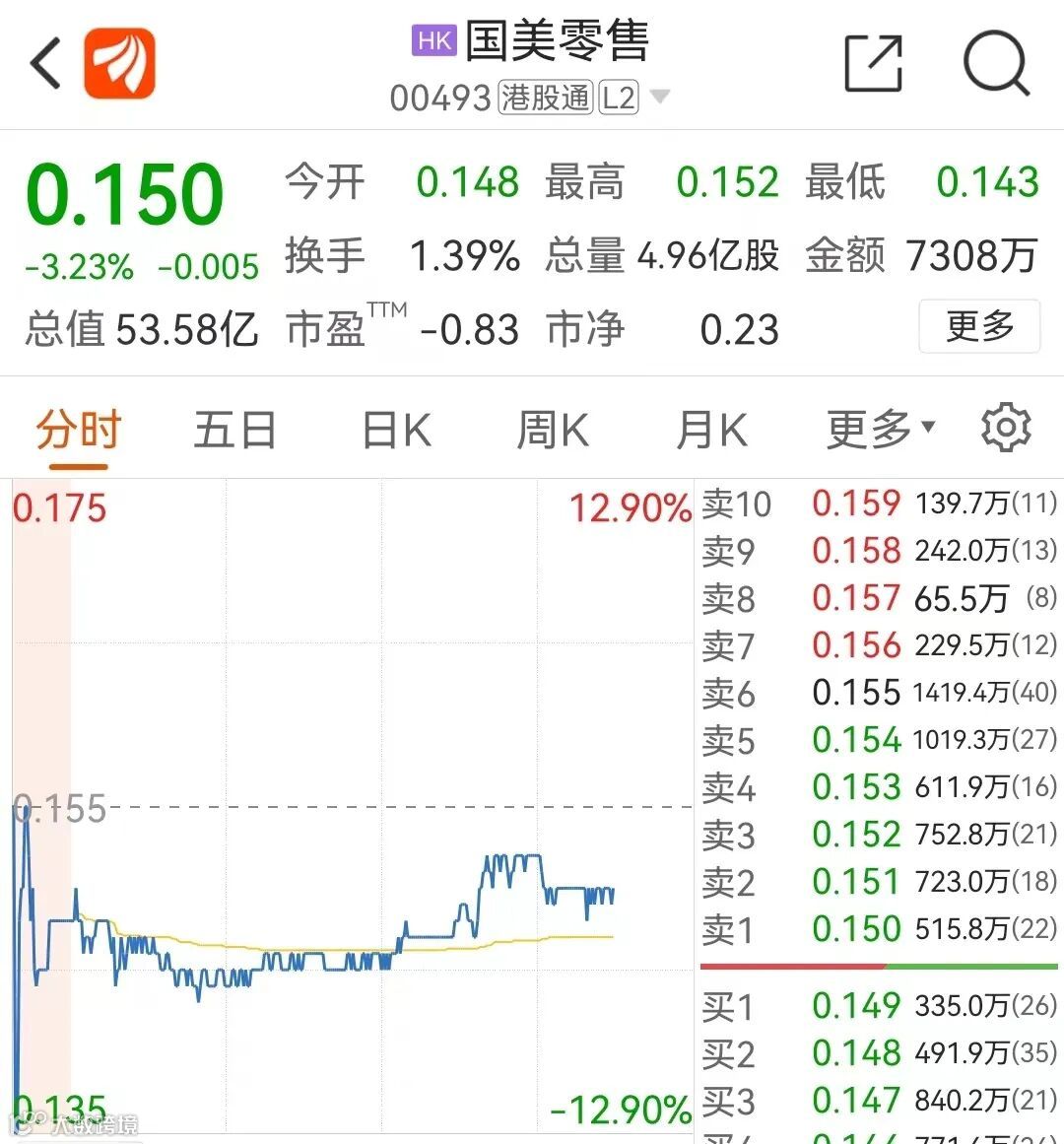 其中,国美零售盘中跌至0.143港元,跌幅一度接近8%,连创历史新低。随后,跌幅有所收复。