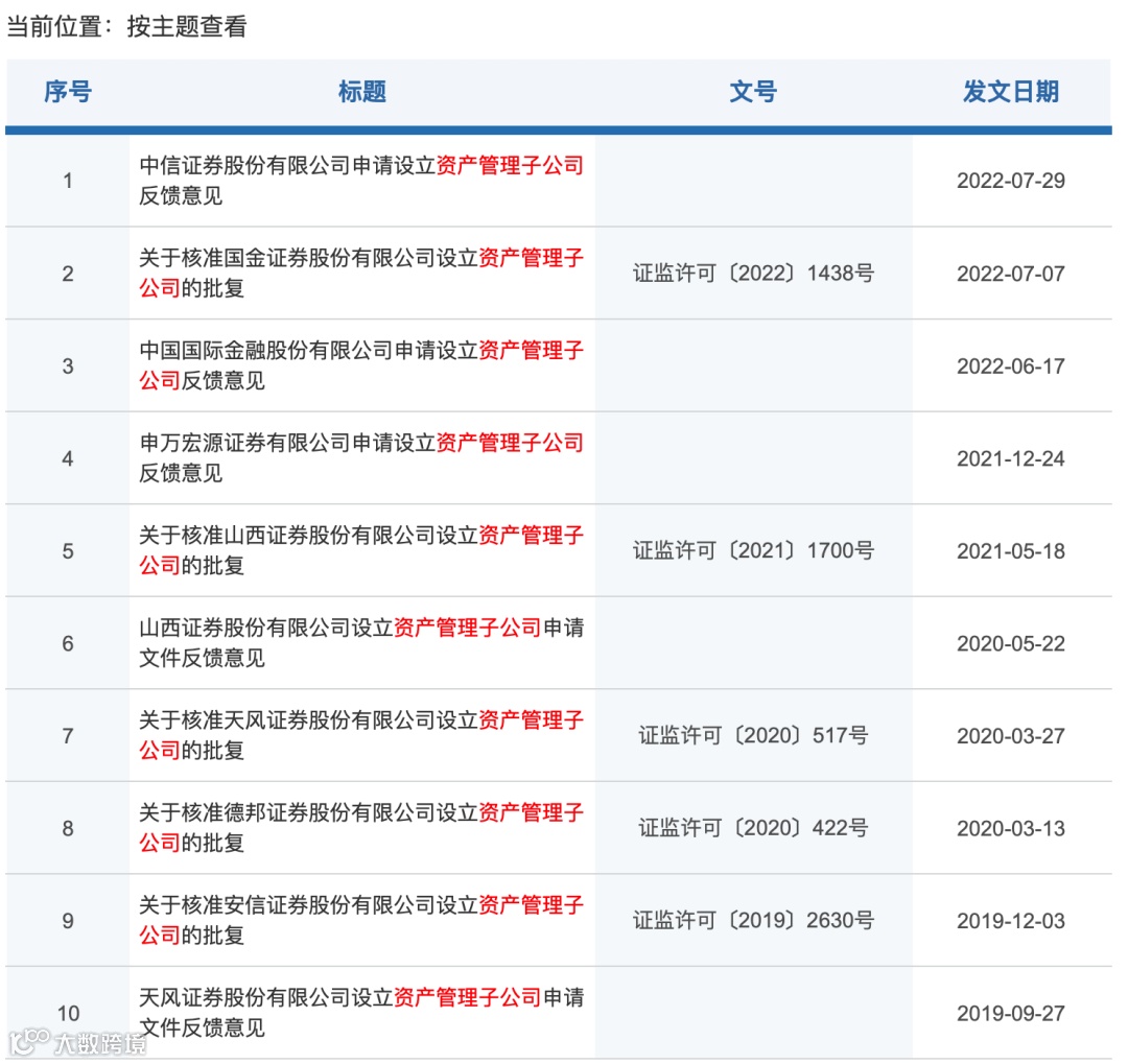 此外,证监会网站信息显示,自2019年年底安信证券获批设立资管子公司后,一度中断了近四年(2016年1月至2019年12月)的券商资管子的设立正在逐渐热门起来。今年以来,华安证券、国信证券、国联证券、长城证券陆续提请设立资管子公司;国金资管已于7月7日拿到证监会的核准批复;中信证券和中金公司两家龙头的资管子设立申请,也在近期相继进入了反馈意见阶段。在资管行业监管政策导向的鼓励下,未来券商资管子公司或有望迎来一轮明显扩容。