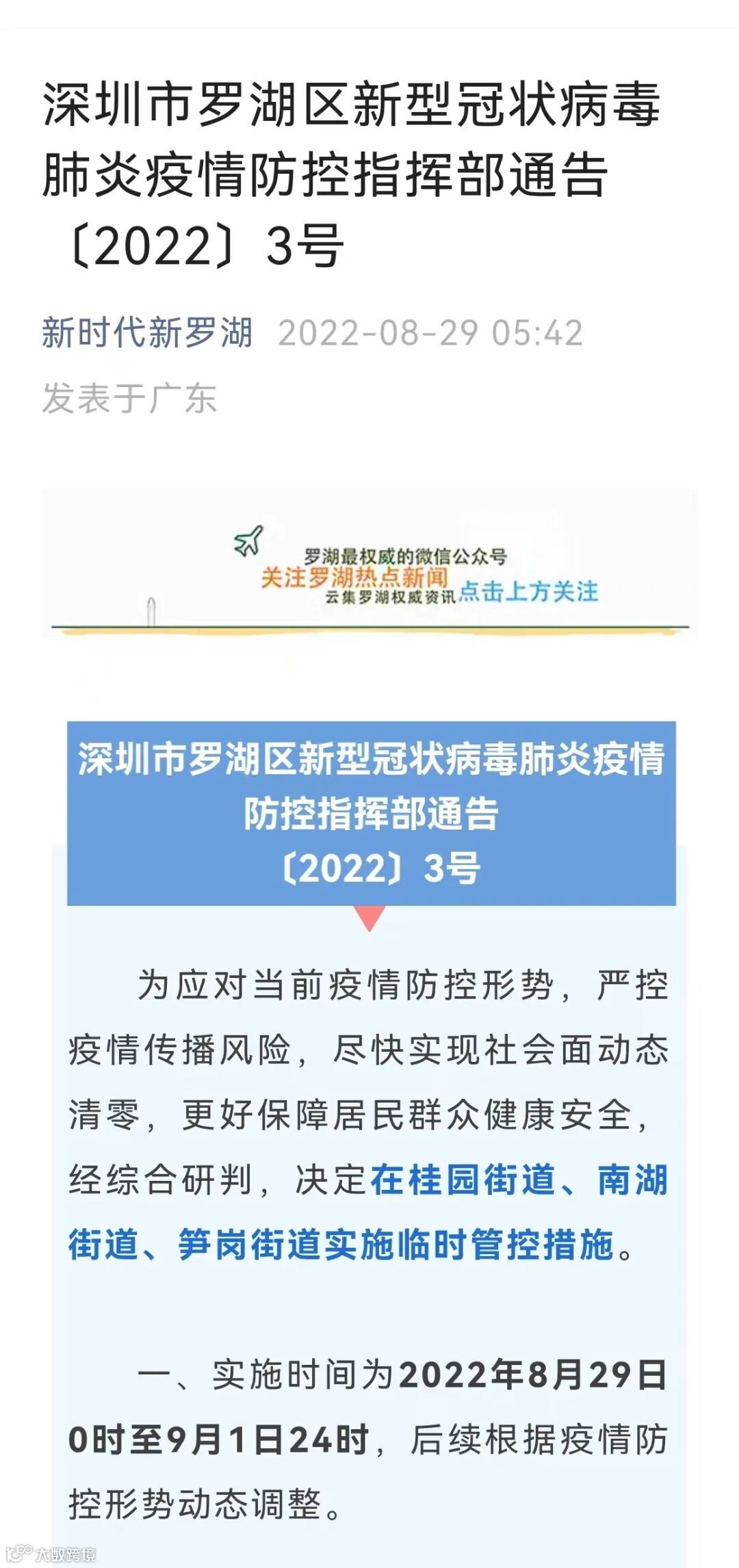 深圳市罗湖区新型冠状病毒肺炎疫情防控指挥部通告〔2022〕3号