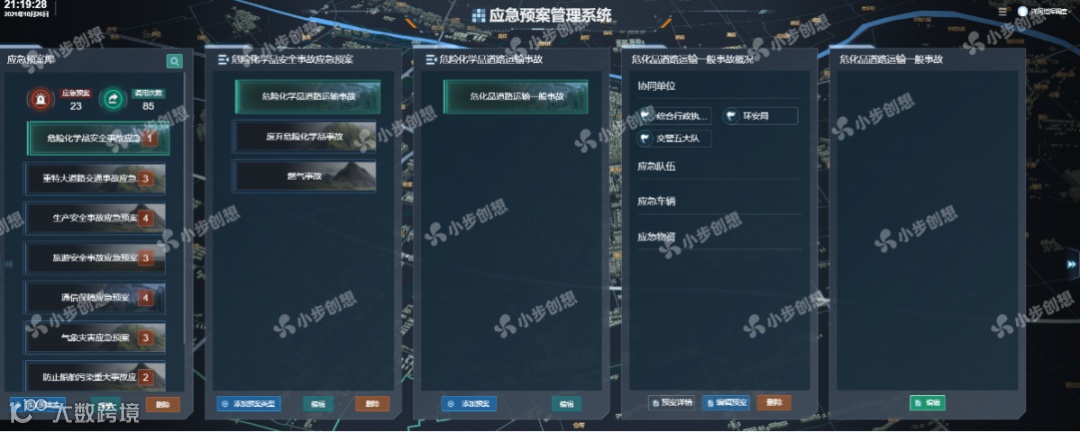 结合应急预案管理系统,可对预案类型、名称、级别等进行全过程编辑管理,围绕各类城市突发问题,就可启动相应预案,联动各类应急资源及时处置,助力快速反应和科学调度。