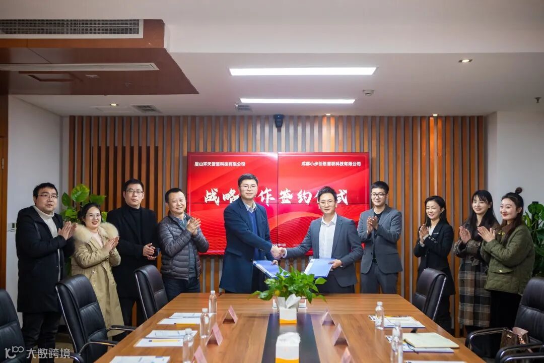 1月6日,成都小步创想慧联科技有限公司(以下简称:小步创想)与眉山环天智慧科技有限公司(以下简称:环天智慧)在成都举行战略合作签约仪式。