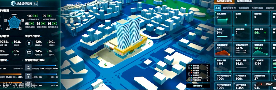 从区市政管理指挥中心大屏幕上看到,智慧城管数据中心囊括了我区城市管理数据资产,还能显示各单位接入系统端口的占比,智慧城市运行态势平台更是通过一张图可以直观地看出各系统、各类基础设施的详细数据信息。