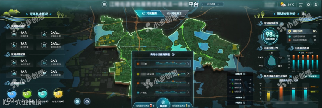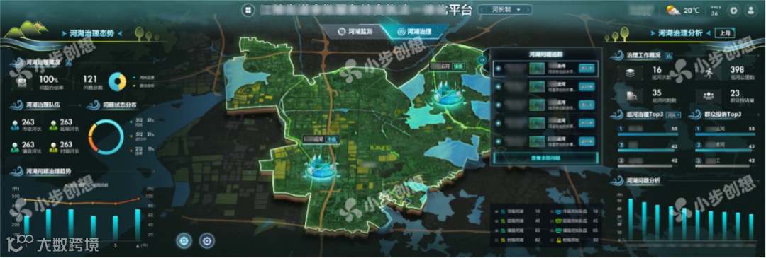 基于大数据、可视化技术,通过河湖问题治理分析,接入河湖问题上报和处置数据,精准分析城市河湖问题治理痛难点,为统筹推进水污染防治、水环境治理以及河湖执法监管提供数据支撑,保障河湖健康。