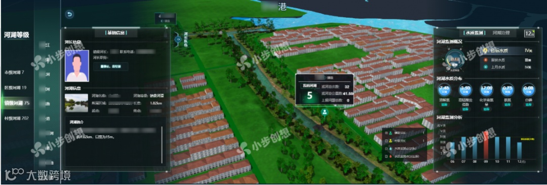 ●河湖水质监测:汇聚河湖水质监测数据,借助可视化技术分析展示城市河湖水质达标率趋势、水质等级分布情况,可帮助管理者全面了解城市河湖面貌改善趋势。