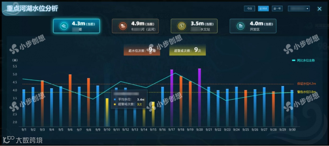 同时,预先设置阈值,当河湖水位出现异常则自动告警,从而及时资源调度,保证河湖问题早发现、早解决。