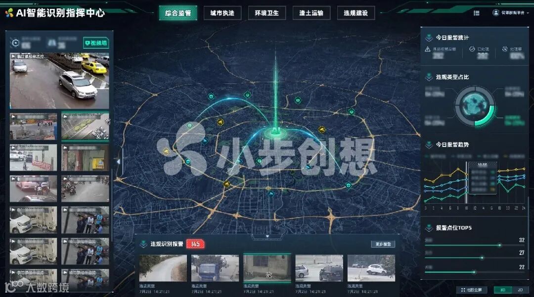 而采用人工智能,不仅可以自动识别违法停车、店外经营、井盖破损等58类典型城管场景,还能实现24小时自动采集巡查、事前预警。