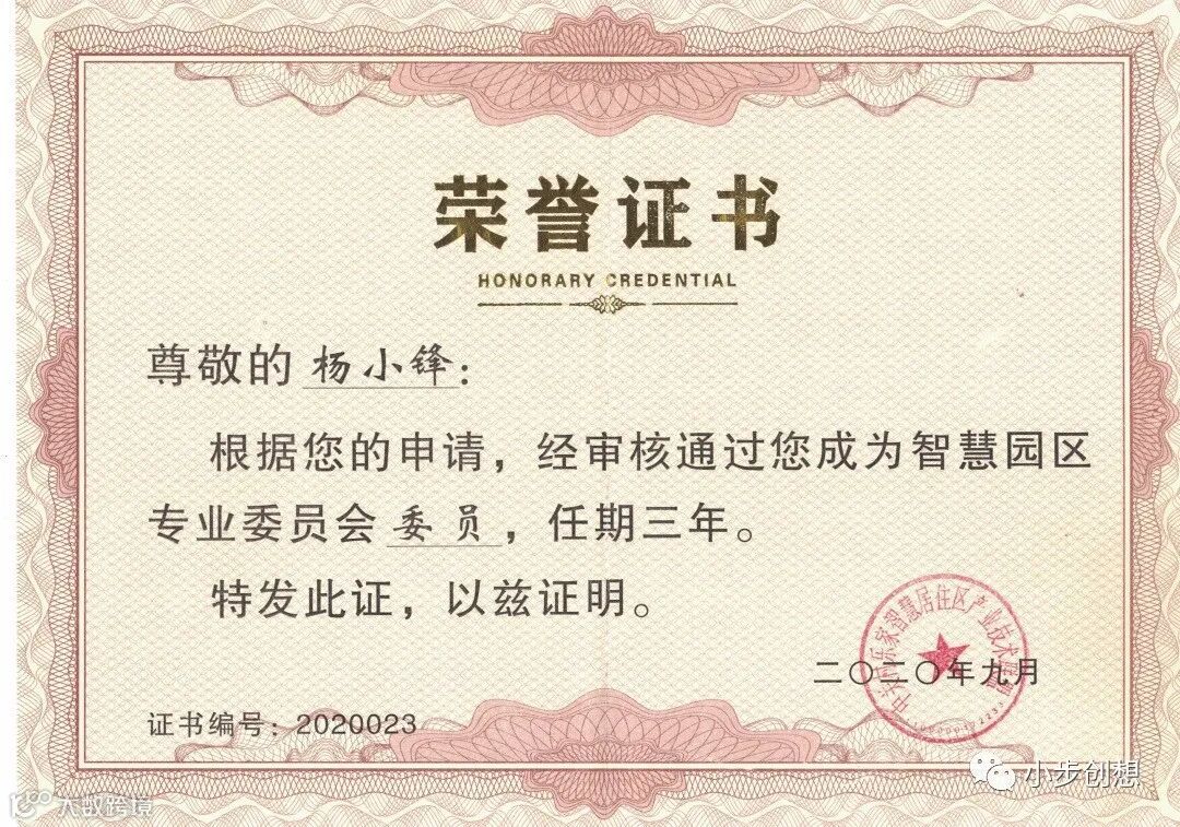 小步创想董事长杨小锋获智慧园区专业委员会委员、2020中国智慧城市先锋榜行业精英称号;