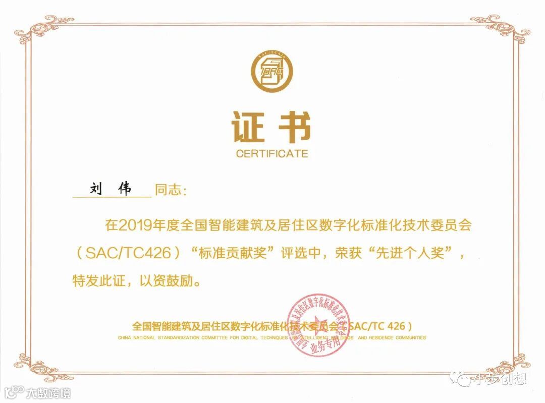 解决方案总监刘伟荣获“标准贡献先进个人”标准贡献奖。