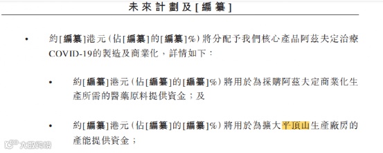 此次上市募资投向之一,便是公司核心产品阿兹夫定治疗COVID-19的制造及商业化,主要用于为采购阿兹夫定商业化生产所需的医药原料提供资金,及用于为扩大平顶山生产厂房的产能提供资金。