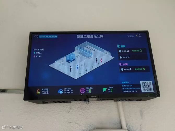 随后,龙副市长一行人参观了新型智慧公厕,公厕大厅电子显示屏幕清楚地显示了蹲位的使用情况。公厕还安装了红外感应器、异味监测器等设备,公厕环境不再脏乱差。