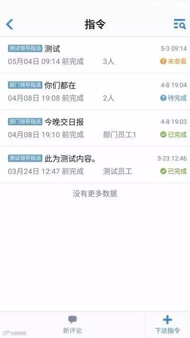 通过指令功能可下达员工开会通知,实时反馈员工是否查看,是否收到消息,并且也可直接写总结将会议记录上报。