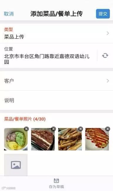 问题二:项目上的员工们每天早上和中午都需要去上传共享他们的每顿的菜品照片,并且在每个周日的时候也需要去上传每周的餐单做共享。目前是在微信上去共享,每天手机里面都会有大量的照片和缓存,不好用。而且直接传很多照片不能直观的分清哪一个菜品是哪个项目传的。