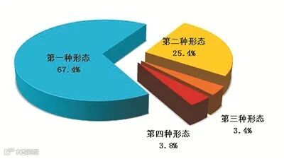 △全国纪检监察机关运用“四种形态”占比图(“四种形态”是指:1.经常开展批评和自我批评、约谈函询,让“红红脸、出出汗”成为常态;2.党纪轻处分、组织调整成为违纪处理的大多数;3.党纪重处分、重大职务调整的成为少数;4.严重违纪涉嫌违法立案审查的成为极少数。)