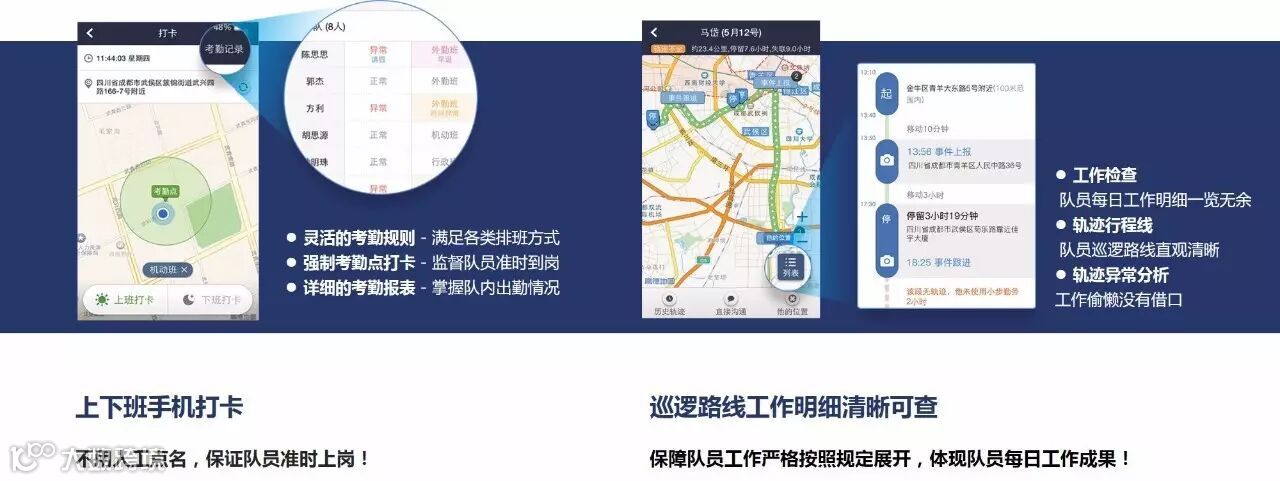 导入人员值班表和设置考勤点,网格通移动终端打卡,保证人员准时到岗。