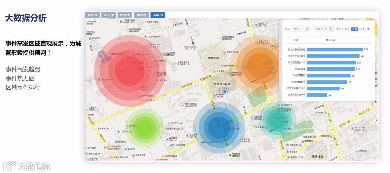 所有的事件处理都会形成统一的台账为街道和社区的考核工作、区域管理预判提供科学的依据。