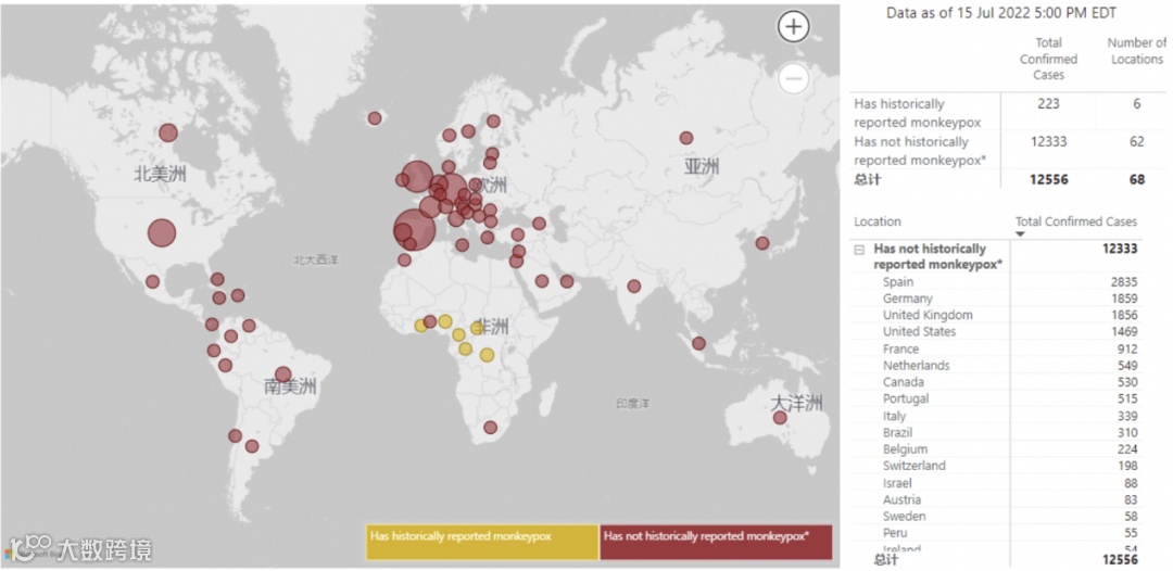 新冠疫情再度反扑的同时,美国的猴痘疫情也愈发严峻。据美国疾控中心的最新数据显示,截至7月15日,美国已有至少1814例猴痘疑似或确诊病例,全球共有68个国家累计报告了12556例猴痘确诊病例。美国白宫高级卫生官员警告,猴痘疫情越发严峻,现在控制猴痘病毒可能为时已晚。