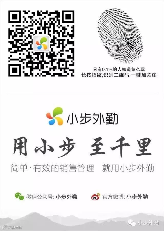 小步外勤专注在移动销售管理软件市场,为企业提供最优质的移动信息化服务。将不断优化小步外勤软件,打造出紧跟移动互联网时代,既能满足企业需求,又拥有优异互联网体验的全新企业级移动一流产品,成为移动互联网时代销售管理软件市场的引领者!