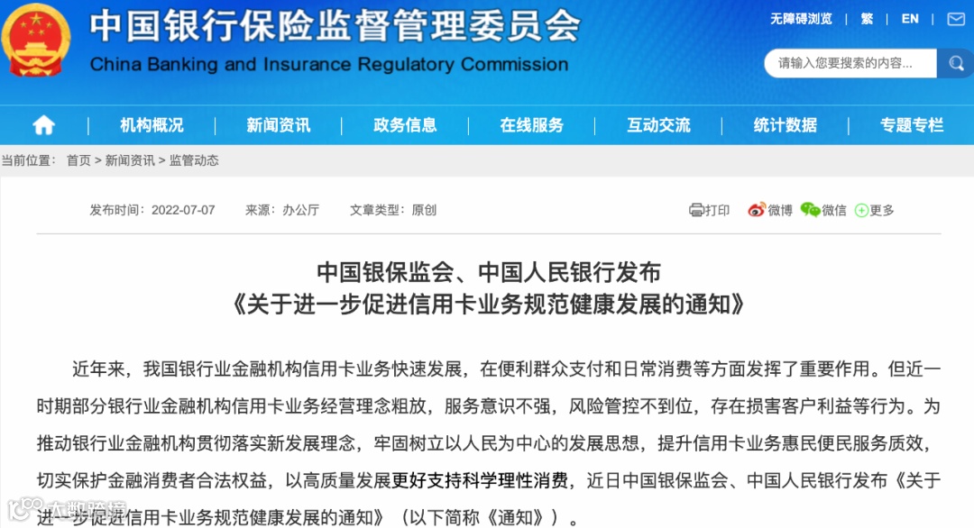 《通知》明确,银保监会将会商人民银行按照风险可控、稳妥有序原则,推进信用卡行业创新工作,通过试点等方式探索开展线上信用卡业务等创新模式。