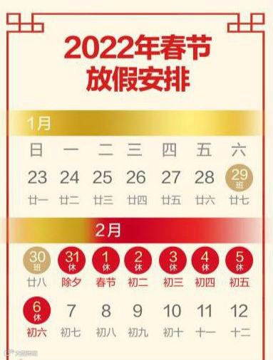 2022年1月31日至2月6日休假,共7天,2月7日(年初七)正常上班!