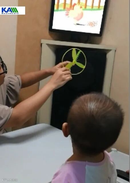 说明:此视频孩子已能在听到声音后立即转头看动画(建立条件化的步骤没有展示)。