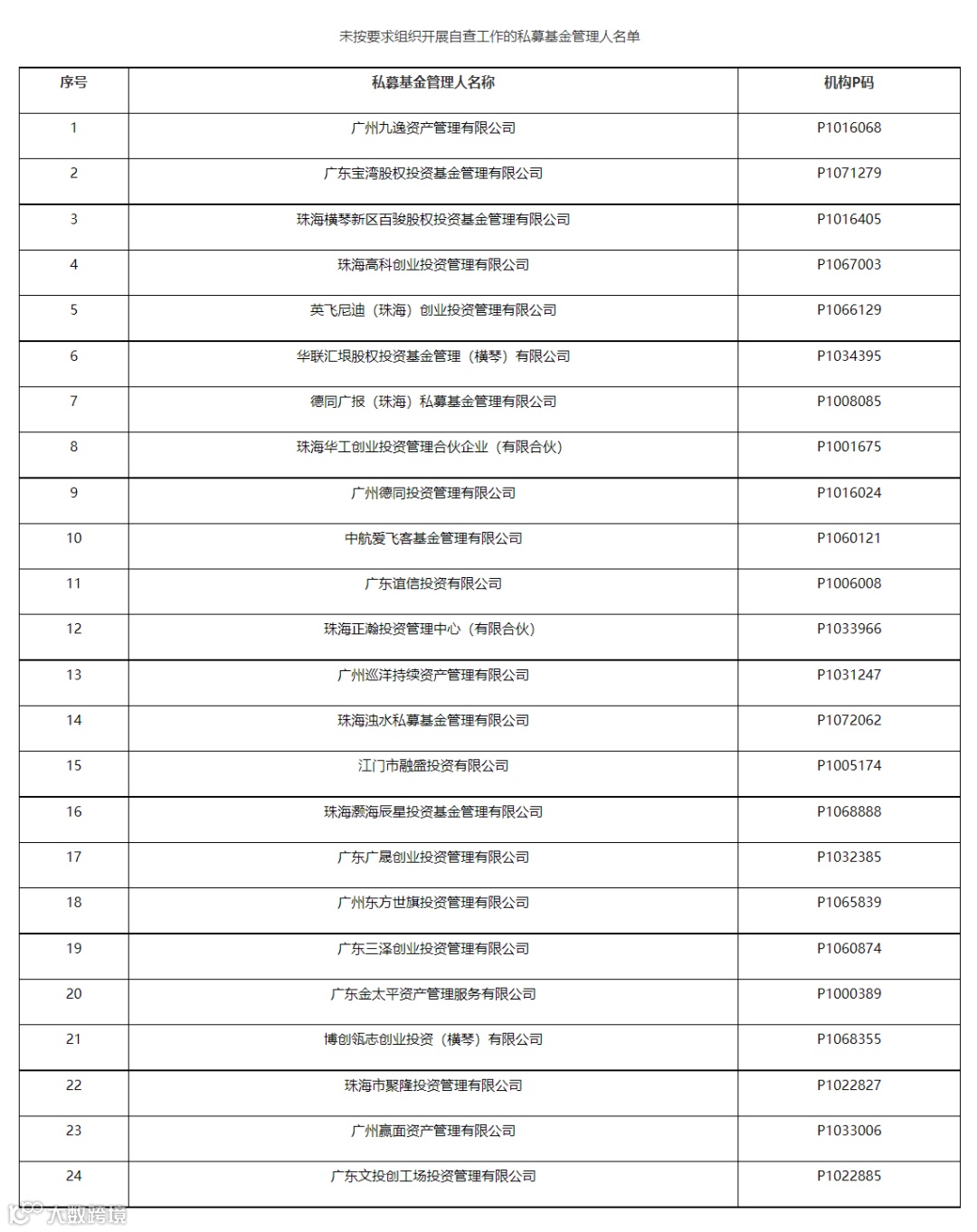 7月7日,广东证监局网站发布《关于要求相关私募基金管理人的有关负责人到我局接受监管约谈的通知》显示,截至6月15日,仍有24家私募基金管理人未按要求向广东证监局报送自查材料。