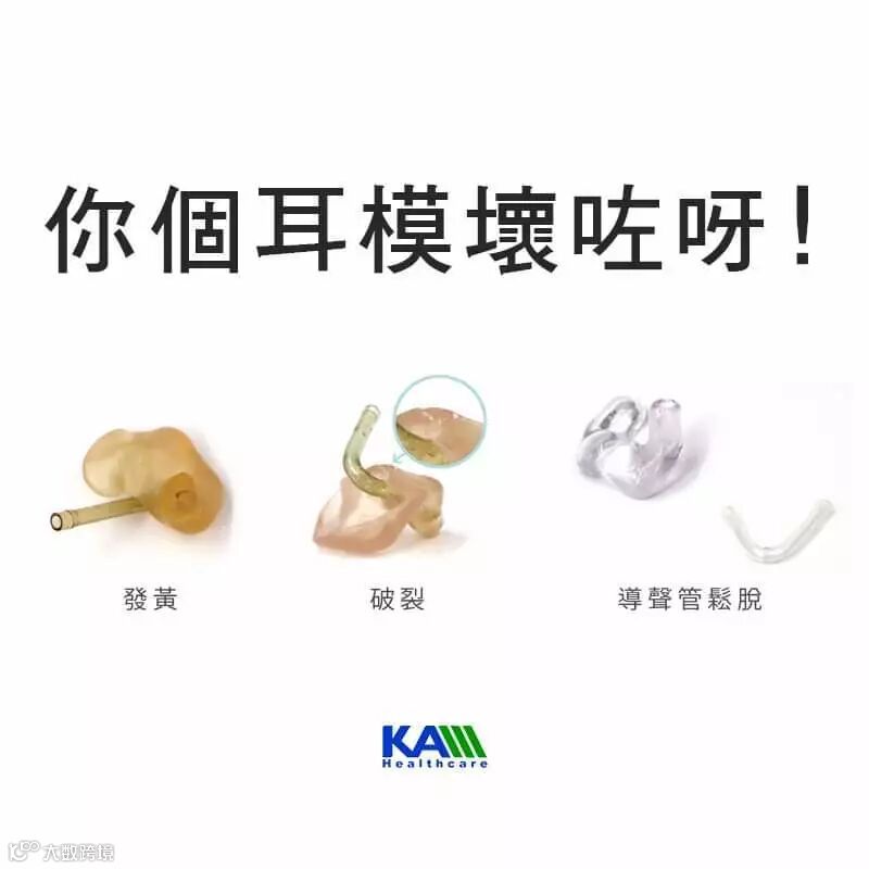 A:一般情况下,一只耳模的寿命约为1-2年,如果保养得当,便可将寿命延至2-3年(软耳模使用寿命会短一些)。可是,当耳模开始变黄、松脱,就是时候换耳模了。
