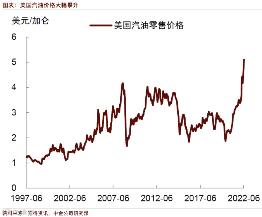 目前来看,美国的这场通胀危机,短时间内可能无法平息。当前全美平均汽油价格已升至每加仑5.004美元(1加仑约为3.7升),这是美国历史上平均汽油价格首次突破5美元,而一年前这一数据仅为3.077美元/加仑,涨幅超过62%。