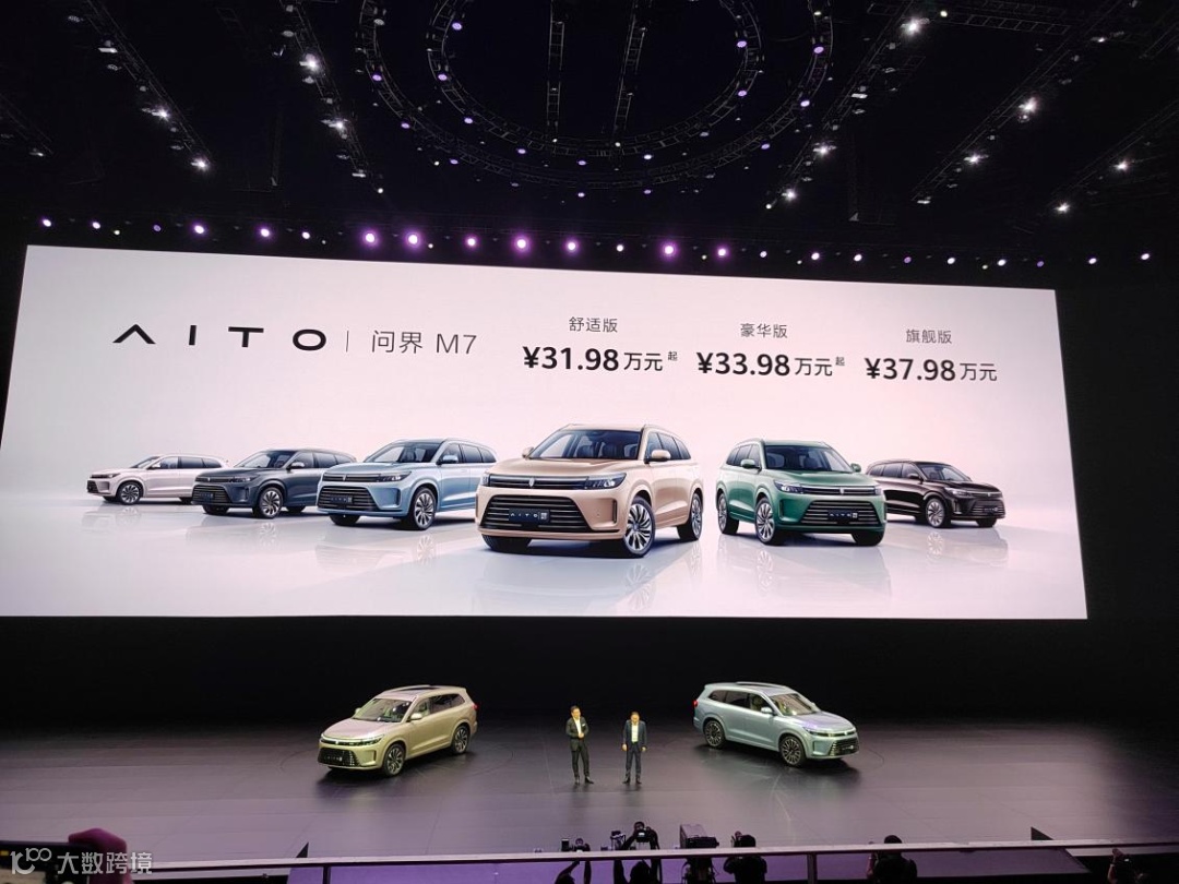 价格方面,在综合补贴后全国建议零售价,AITO问界M7舒适版为31.98万元起;AITO问界M7豪华版为33.98万元起;AITO问界M7旗舰版为37.98万元起。
