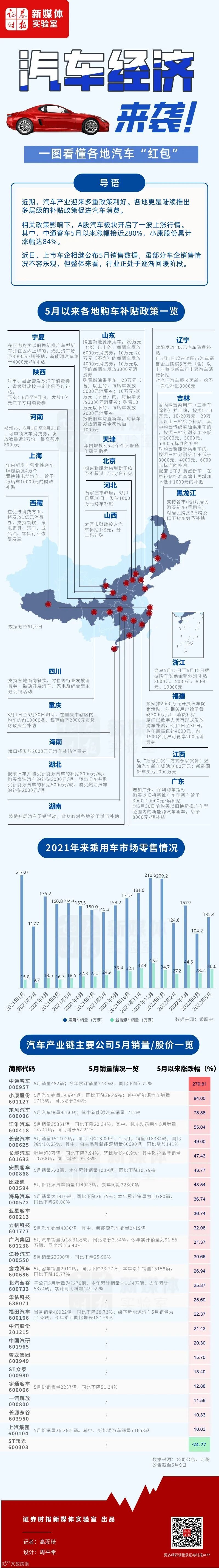 相关政策影响下,A股汽车板块开启了一波上涨行情。其中,中通客车5月以来涨幅接近280%,小康股份累计涨幅达84%。