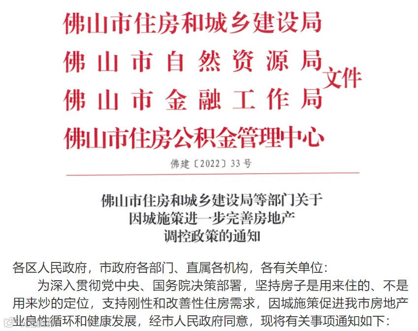 4月26日,佛山住建局内部发布《关于优化存量商品住房政策的通知》。