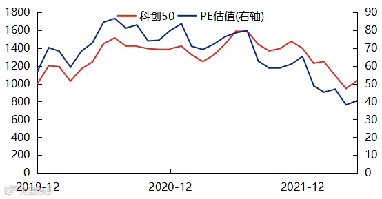 而今天,科创50指数从2021年8月初的1639点,一度跌至2022年4月的853点,接近腰斩。即便5月至今有所反弹,但仍有接近4成的科创板个股股价低于发行价,大量公司都已经经历了超50%的回撤幅度。从估值层面上看,同样已是科创板开板以来最低水平,科创50指数40倍左右的PE估值,已低于创业板指49倍左右的水平。