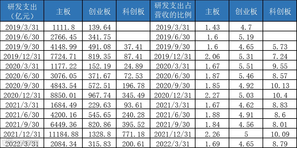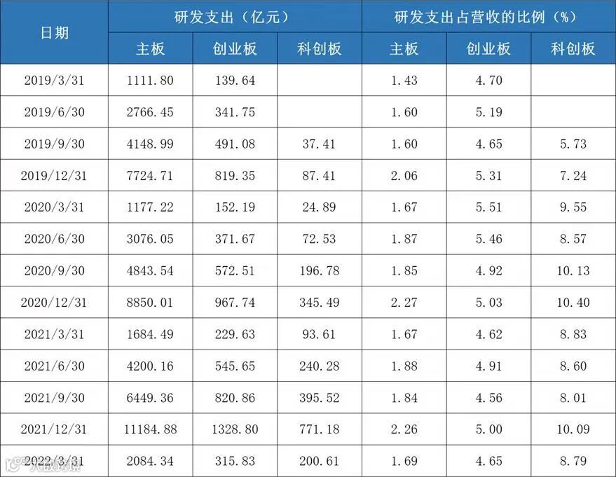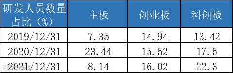 由于整体体量较小,从研发的绝对金额和人数上,科创板不如创业板和主板,但是从研发费用率和研发人员占比角度可以看到,科创板的“研发驱动”含量是目前所有板块中最高的。