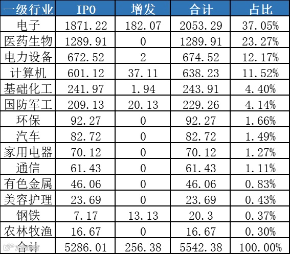 截至2022年6月2日,科创板共有上市公司424家,主要集中在电子,医药生物,电力设备新能源,计算机,国防军工,基础化工等行业,有非常明显的行业分布特征。从募集资金角度,科创板目前累计实现募集资金5542.38亿元,其中IPO 5286.01亿元,再融资256.38亿元,非常有力地支持了实体经济尤其是新兴科创型企业的发展。