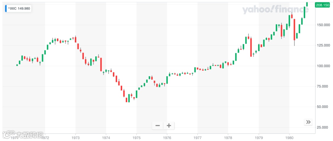 如今困扰市场的主要周期性宏观因素是40年以来的最大通胀周期,市场的定价主导因素由之前的结构性因素让位于周期性因素。回顾70年代通胀期,我们可以看到虽然通胀维持了较长时间,但是周期性因素本身对市场的影响时间并没有太长,纳斯达克综合指数诞生于1971年2月5日,从100点开盘,至1973年1月见顶至136.84点,然后在1973-1974年的“滞胀”周期中,一路下跌至54.87点,顶部回撤达到约60%,并在1974年Q3筑底。而此时的通胀依然较高,在整个70年代的中后期,从1974年至1980年,股票市场的定价在此后重回了结构性因素,经历了“滞胀”周期洗礼的纳斯达克指数从最低点的54.87点一路上涨至1979年底的151.14点,并在后面的80年代更加大放异彩。
