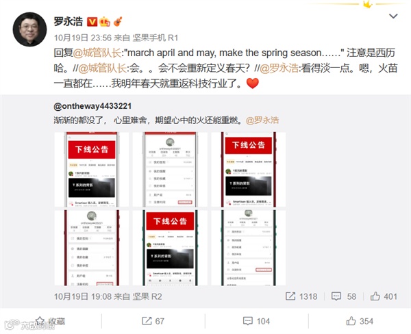 早在2021年的10月,罗永浩表示:“我明年春天就重返科技行业了。”同时他还强调,是还完债的当天就会回去。而如今12日深夜的“再次埋头创业去了”,是不是也间接暗示,债务已经全部还清?