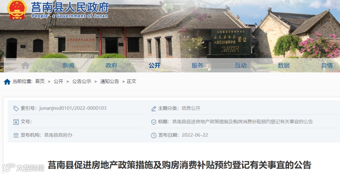 6月22日,山东省临沂市莒南县政府办发布《莒南县促进房地产政策措施及购房消费补贴预约登记有关事宜的公告》。政策措施共13条,包括支持刚性和改善性购房信贷需求、支持房地产企业健康发展、严厉打击虚假宣传炒作三方面。