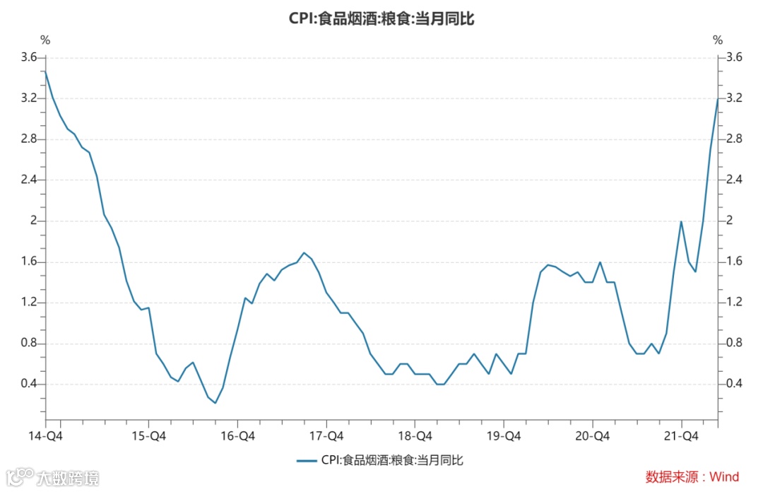 除了猪肉价格,粮食价格的变化也引起市场关注。5月粮食同比上涨3.2%,这一涨幅创下2014年12月以来的新高。