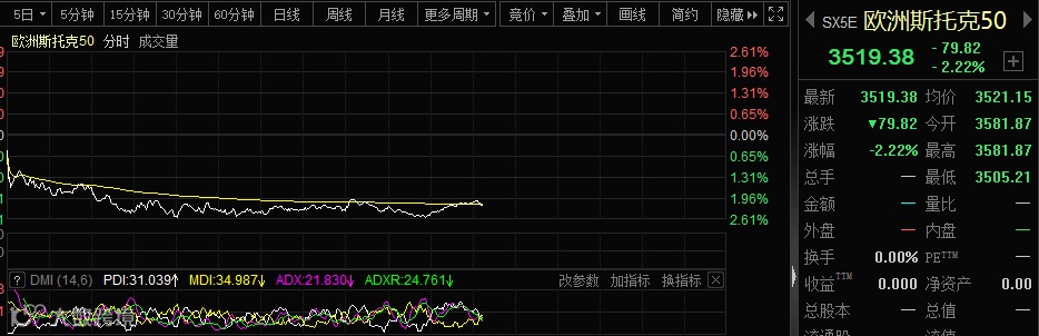 从正在交易的欧洲股市来看,亦难逃集体杀跌的命运。