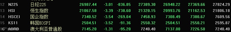 由于上周五美股收盘出现大幅杀跌,本周一,从已经结束交易的亚太市场来看,收盘情况大抵如下。