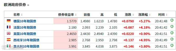 欧洲主要国家的国债收益率亦集体飙升,这意味着国债市场正承受着巨大压力。