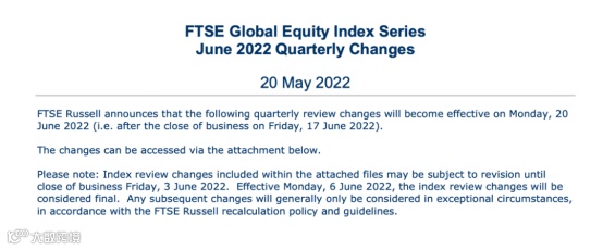 根据安排,相关调整将在2022年6月17日收盘后生效。值得注意的是,本次调整并非最终决定,所有指数成分股最终调整将以截止2022年6月3日重审评议后的结果为准。